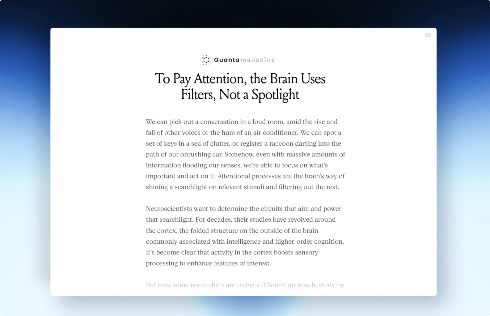 #1 😌 Effortless so that you have more time for yourself: MyMind does all the hard work for you so that you don't have to spend time tagging, organizing, or curating information and ideas. And showcases them in the most visual way possible.